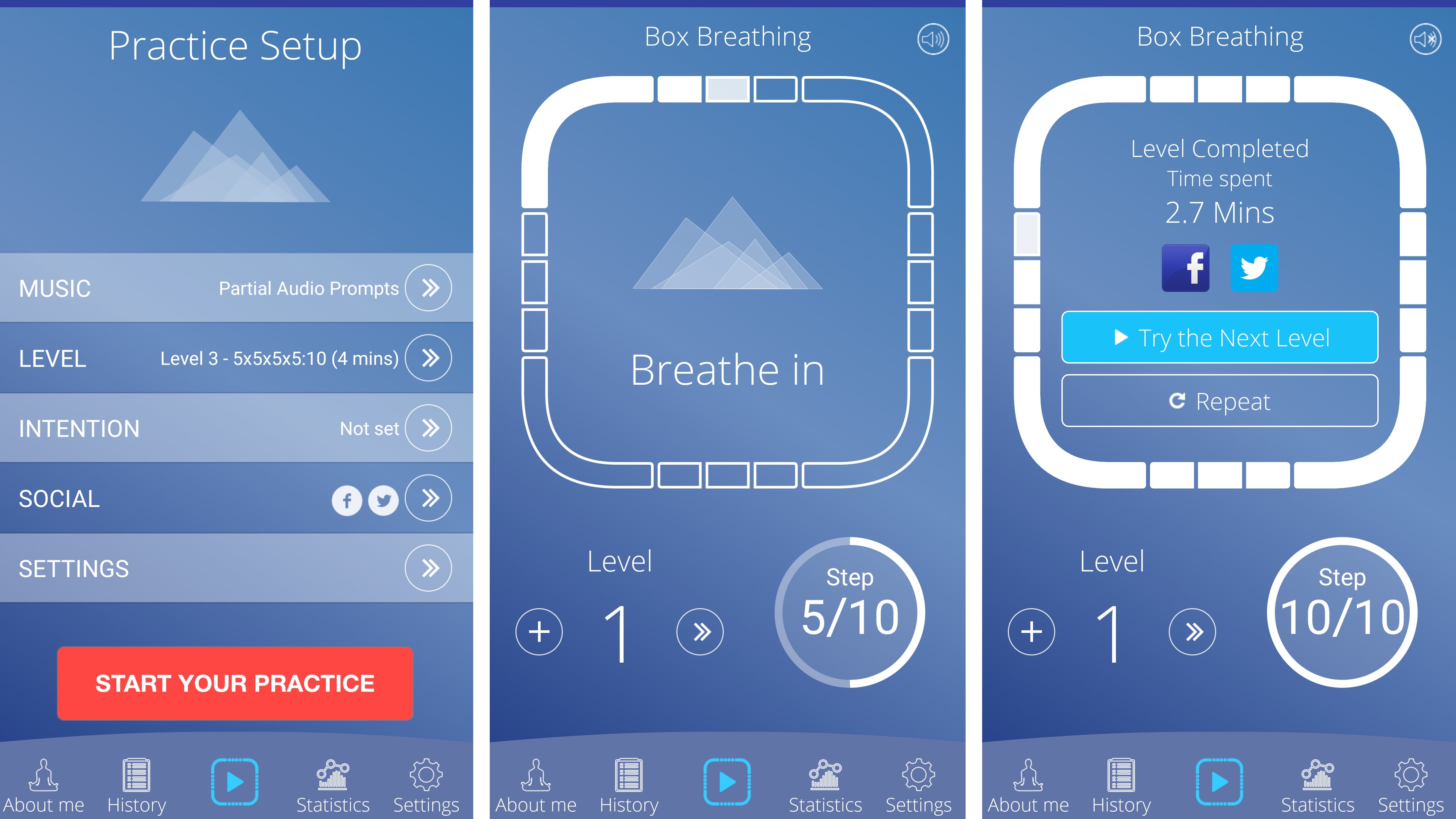 You can work through a number of levels, which adjust how deep a breath to take and how long to hold it, or just stick with the basics, and BoxBreathing also keeps a log of your breathing practice and can be set to remind you to do it daily.